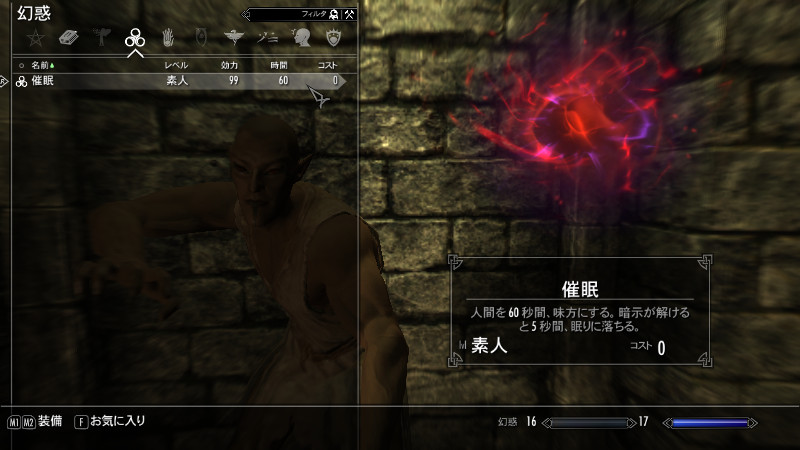 『話術(Speechcraft)スキル』の値を判断して、効果が適応されるかどうかを設定してあります。Perkシステムそのものを改造することは避けました。自分で製作するよりも素晴らしいModがたくさんあるので、別のアプローチから「話術スキル」の価値をもっと高めたいと思ったのが、製作のきっかけでした。対象者が「口下手」であったり、詠唱者が「饒舌」ならば…効果が充分に出るといった感じです。