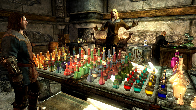 弟子「驚いただろう…?スカイリム各地から、市場に流通しているポーションをありったけ収集してきた!薬に毒、中には眠り木の樹液や危険なスクゥーマなども売人から極秘に買い付けて取り揃えたものだ。それからこっちには……」