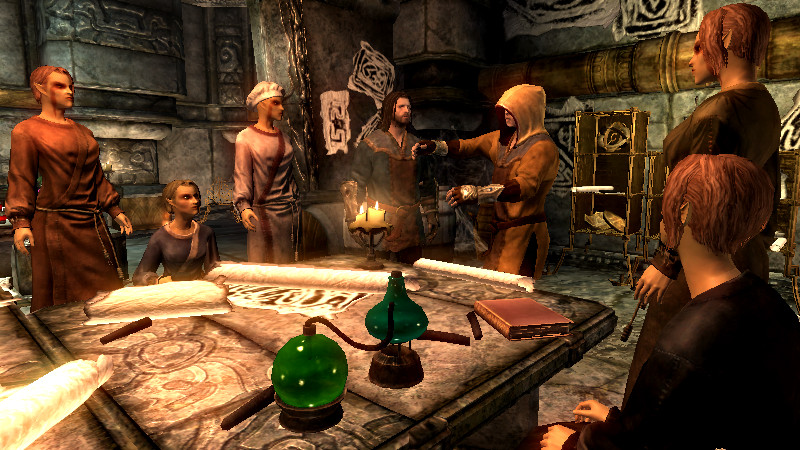 弟子「スカイリムでも数少ない最高の付呪台や錬金台が完備された実験室だ…!耐性実験用の付呪武器作成、自作薬の調合、広間での模擬戦闘訓練などが、この場所なら一度に行える。」