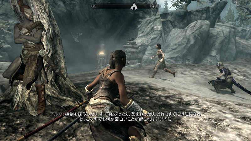 ……逝った。すぐさま物陰から、ガチムチのノルド男が駆け寄って来ました。(後をこっそりつけていたのか?)村人のソンニール氏でした。吸血鬼の女性は、行方不明になっていた彼の妻。特に…ヴィルクマンド君、すまない。もう、手遅れでした……m(_ _)m