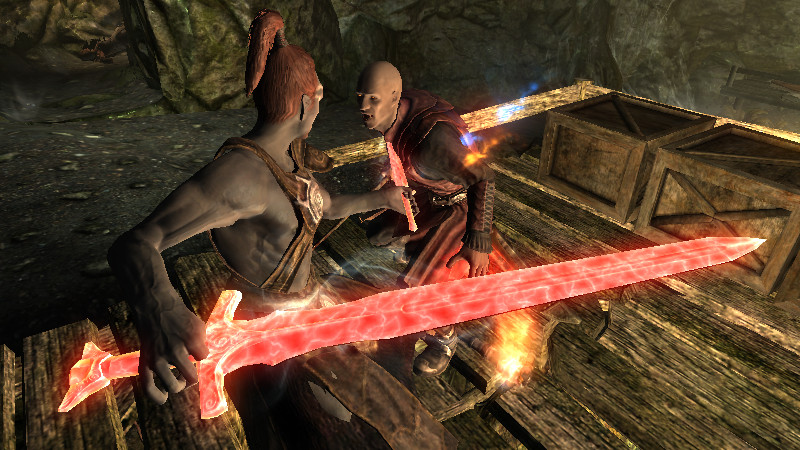 「毒を滴らせる手」を持っています。『ApplyCombatHitSpell』は、「武器のみに適応され、素手にはPerkの効果が反映されない」という特徴があるようです。シャウラス等の毒攻撃を模した「接触毒」のSpellをここに指定しましたが、素手にも適応させるには、ActorのAttackSpellのH2H(素手攻撃)にも、指定する必要がありました。なお、この方法は付呪武器へも“上乗せ効果”を発揮するため、短剣装備時には「付呪+毒」の強力な攻撃となる可能性も。もちろん、毒を出せない場合もあります。(発生頻度:中)