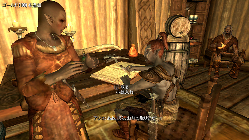 道化エルフ「(パサッ…×2)大丈夫、さぁコレを。私は、『スカイリムの法に抵触する様な、卑劣な行いはしない平和主義者』なんダ。簡単に儲けられる、“素晴らしい方法”を見つけたんだヨ!……ああ、でも決行に際し、厳守すべき“策”がアル。
