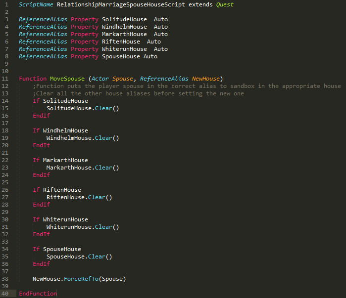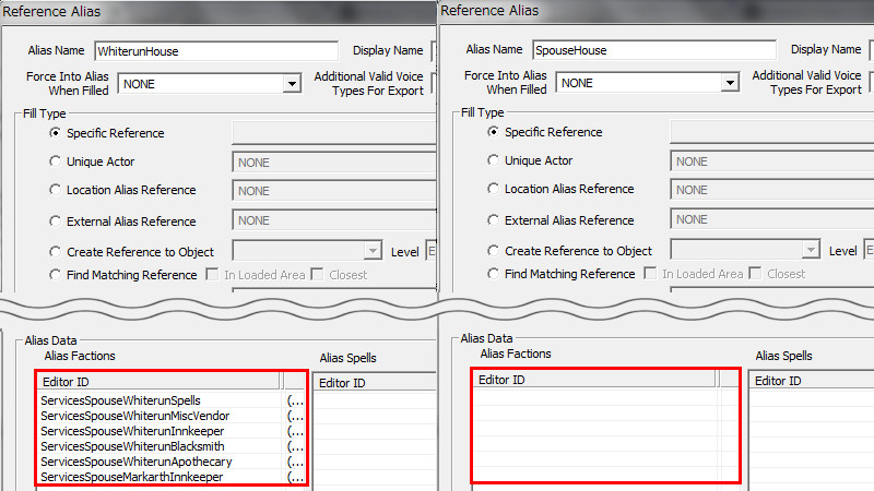 結婚後の配偶者は、指定した家に『定住』します。筆者は長いこと、全てのDLCを導入した状態でスカイリムをプレイしているので…どの辺が変わったのかをあまり体感できていないのですが、DLC:『HearthFire』で新規に追加された要素があり、「養子」や「邸宅の建築」などは、後から可能になったようです。関連する処理を探しつつ、一通りCKでデータを閲覧しました。