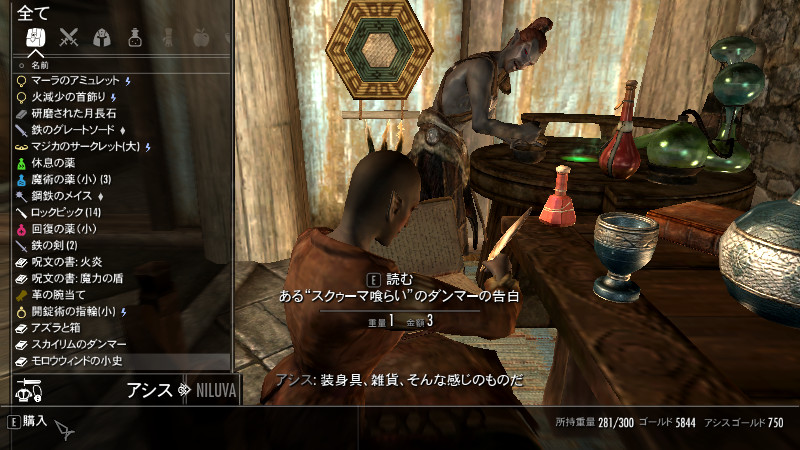 ※持ち物のやり取り可能なアシスから買うのは、所持金の無駄です。物を売っても彼の利益には加算されません。「アイテムを地面に捨てずに処分する」役割しかありません。