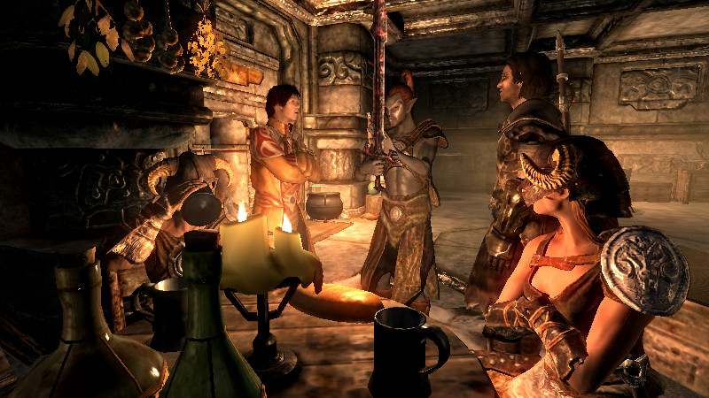 弟子「君の言うとおりだ、ドヴァキン。“コレ”が欠かせない。魔力の込められた武器を持つ者は、常に新しい魂を欲するようになる。魂が無くなると、別の魂を集めるために無益な戦いを繰り返す。そうして気付かぬうちに、やがて立場は逆転する…。武器は持つ者の魂を支配し、使用者は魂を集めるための道具に成り下がる。強大な付呪を使いこなすには、相応の精神力が求められるのだ。」