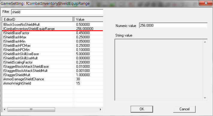 「fCombatInventoryShieldEquipRange」という値で