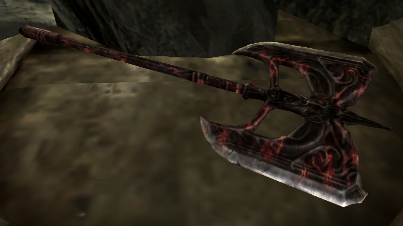 こちらも、PaletteTextureの“明度”がどのようにブレンドされているかを調べるために、一面の黒色のddsファイルに置き換えてみました。3つのチェックボックスが☑になっている時は、黒色にはならず、付呪する前の武器と変わらない状態になりました。Alpha関連に☑を入れてある時に、明度が0の黒をブレンドすると、合成されたエフェクトの明度も0になってしまい、見えなくなるのかもしれません。