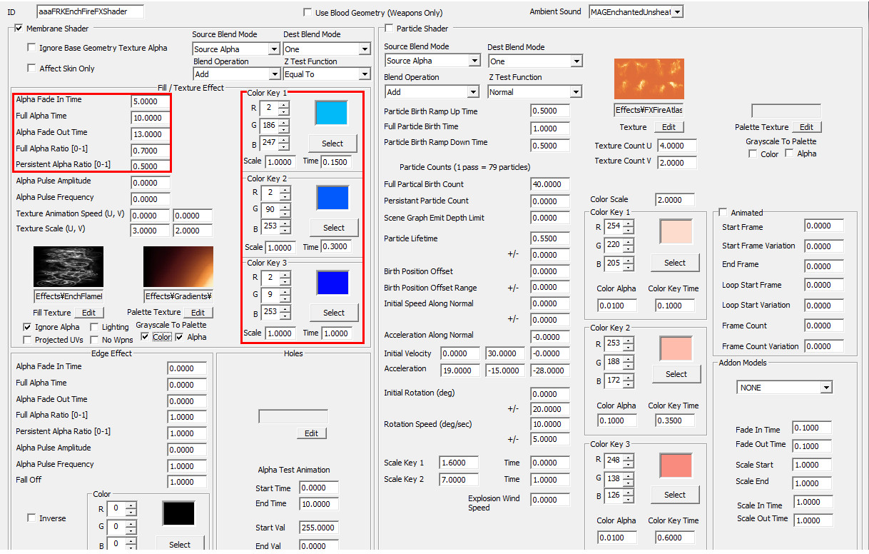 EffectShaderが付いているObjectを溶解する時に使用する項目。スカイリムの作中では“雷撃”によって対象が灰になる際に使用された。この原理は、グレースケールにした画像のアルファ値をカットするアニメーションによって実装されている。たいていは、Fill/TextureEffectと併用される。