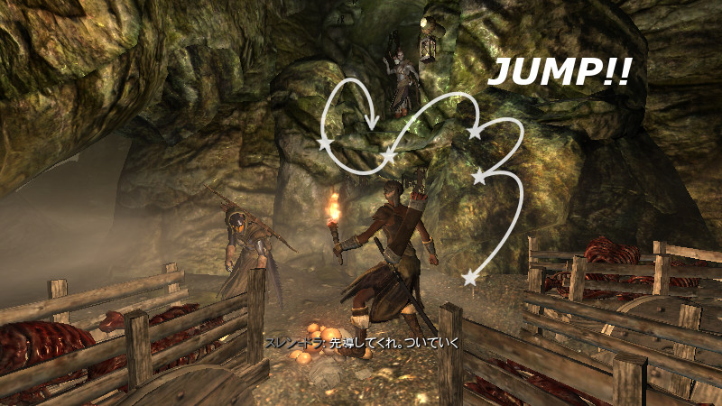 ※アシス、ハドリア、スレン=ドラは、全員フォロワーです。プレイヤーは、1st視点でカメラマンをやっています。プレイヤーがジャンプで登って、待機すると着いてきます。