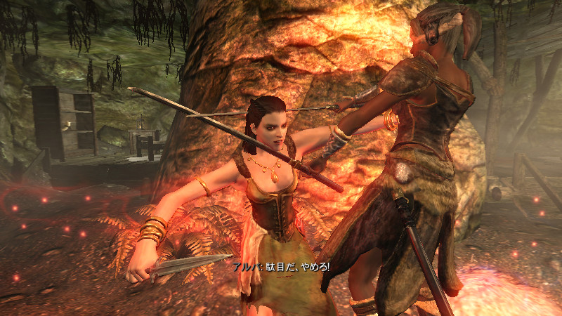 恋人のアルバが、事件の共犯者として抹殺されようとしているのに…顔色ひとつ変えずに仕事場で黙々と作業していました。(正直、この人が一番…コワイ。) 吸血鬼の討伐へと一致団結し、洞窟の入口に到着。しかしながら…家族を失い、最も憤っているソンニールさん以外は、怖気づいて村へ引き返してしまうという……気合いだけで着いてきた、チキン連中なのでした。一応、我々の士気を鼓舞してくれたのでしょう…。(落胆)