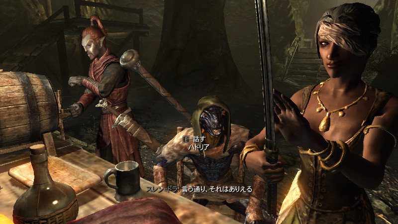 スレンドラ「えっ…アシス隊長、ちゃんと今の話を聞いてたのか~?敵は定命の者じゃない…吸血鬼だよ、吸血鬼!!視界に入った者の事を“食い物”と考える奴らが、世紀を越えて生き延びていたんだ。どれだけの犠牲者が出たんだろうな?…今度は、モーサルを“生贄の村”にしようとしてる。―――奴らは悪だ。今なら喉を一掻きで済む……戻って俺が、カタをつけて来ようか?」
