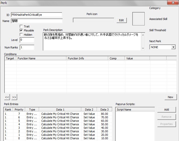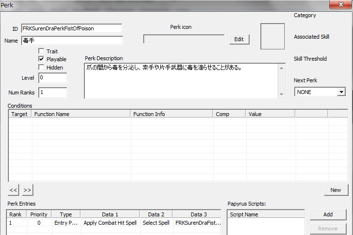 「新規Perkの製作方法」では“Script”を用いた方法”で、